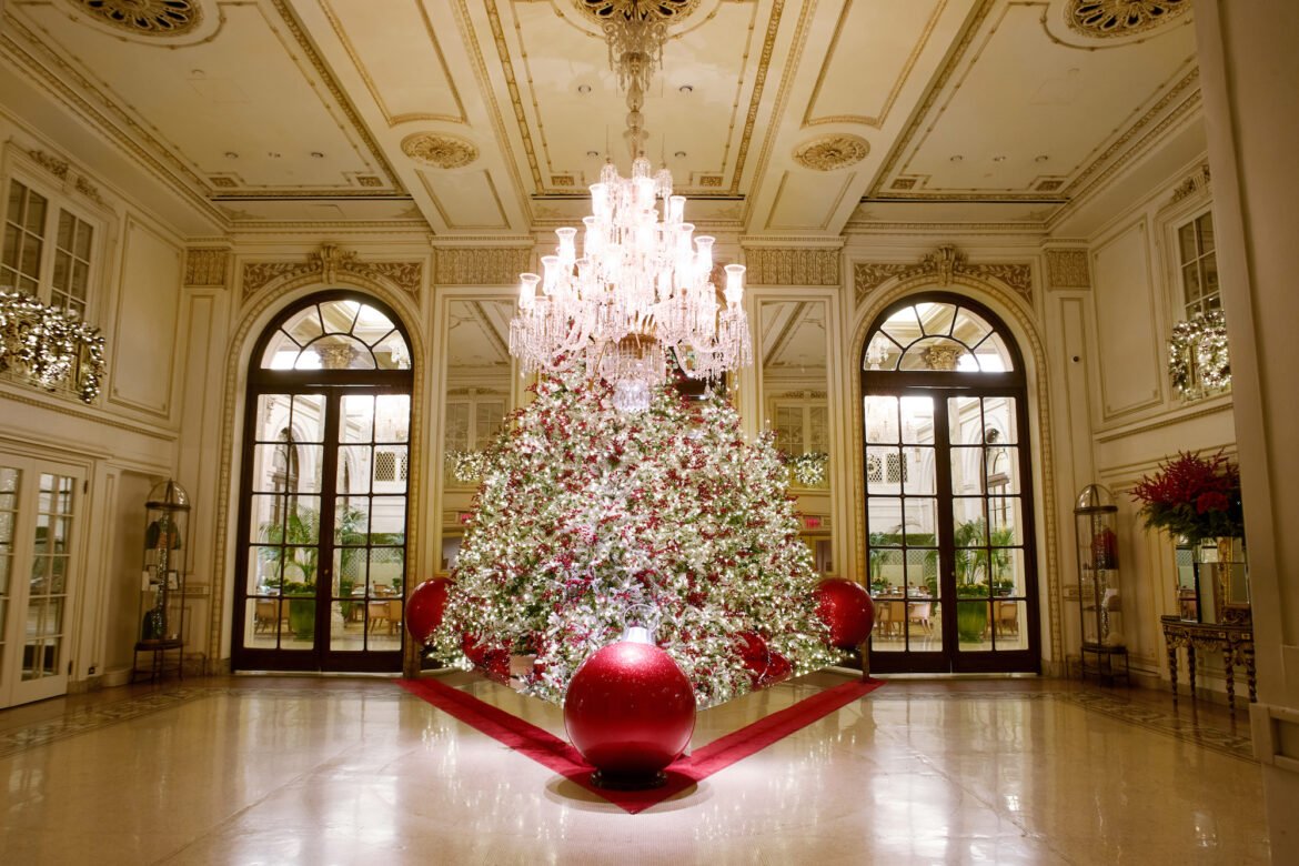 But non-guests can enjoy all the hotel has to offer as well — even just walking through the lobby decorated in a red and white modern twist on the classic Christmas motif is a pleasure. The Palm Court offers afternoon tea daily (including Eloise Tea at The Palm Court with Santa on select dates) as well as a Christmas Day buffet and New Year’s Dinner. On New Year’s Eve, the Palm Court will host a Grand Fete. The historic Palm Court was built over 100 years ago and remodeled in 2013 to honor the original design, which was inspired by the greenery of nearby Central Park. “The room’s signature feature is a soaring stained-glass dome reminiscent of the original built in 1907,” the site describes.