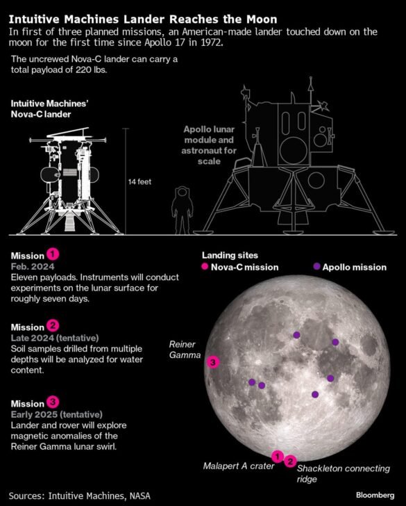 Intuitive Machines Inc., the Houston-based maker of the spacecraft, said in a press briefing late Friday the vehicle is still transmitting data and is able to charge. The company hasn’t yet said whether the position of the lander imperiled its mission.