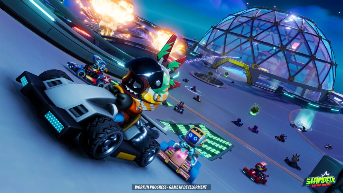 Stampede: Racing Royale is all about conquering the chaos with friends and against the world, making memories with fast-paced automotive shenanigans. The 10,000-IQ plays, the epic fails, the sick drifts – all that stuff. So, grab some friends, play, stream, give us your hot takes, and be part of the wildest racing event in existence. Now, where did I leave that homing missile…?
