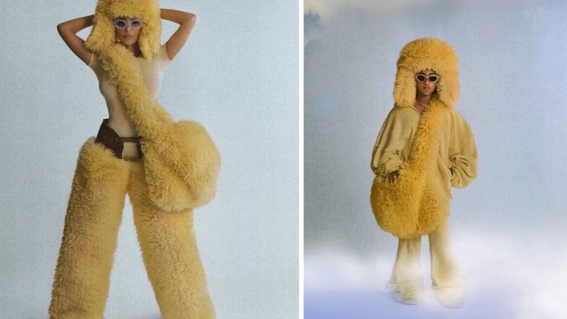The designer Eli Russell Linnetz wanted to showcase his love for California in his FW24 collection entitled, “Made in California,” which features a variety of canary yellow shearling pieces worn by the mother and daughter duo.