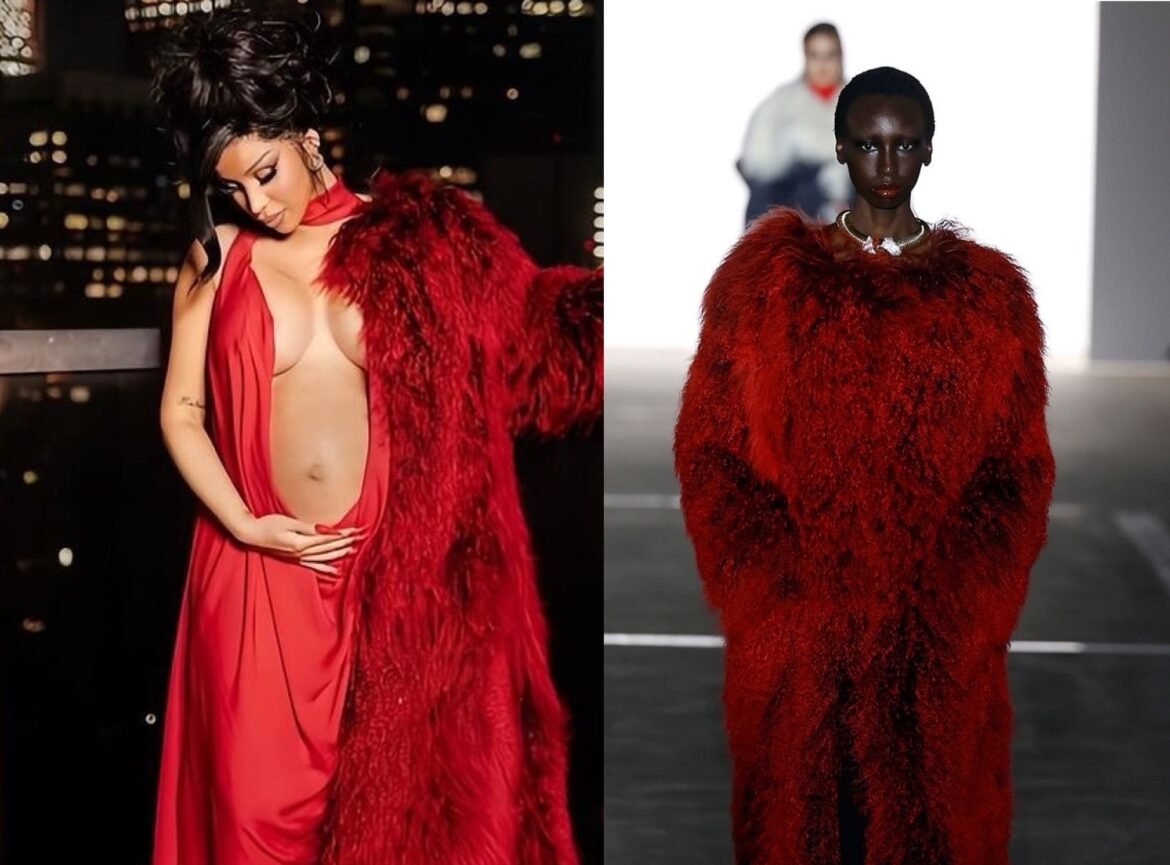 She made the announcement wearing a Fall 2024 Prabal Gurung look, comprised of a red gown and a matching fur coat: