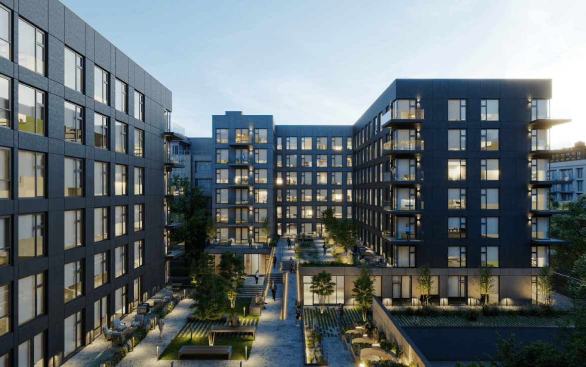 Developed by Chess Builders and designed by S. Weider Architect, the development contains 218 rental units. The complex is designed to embrace indoor and outdoor living, with natural light and outdoor spaces embedded throughout the building, according to the project’s website.