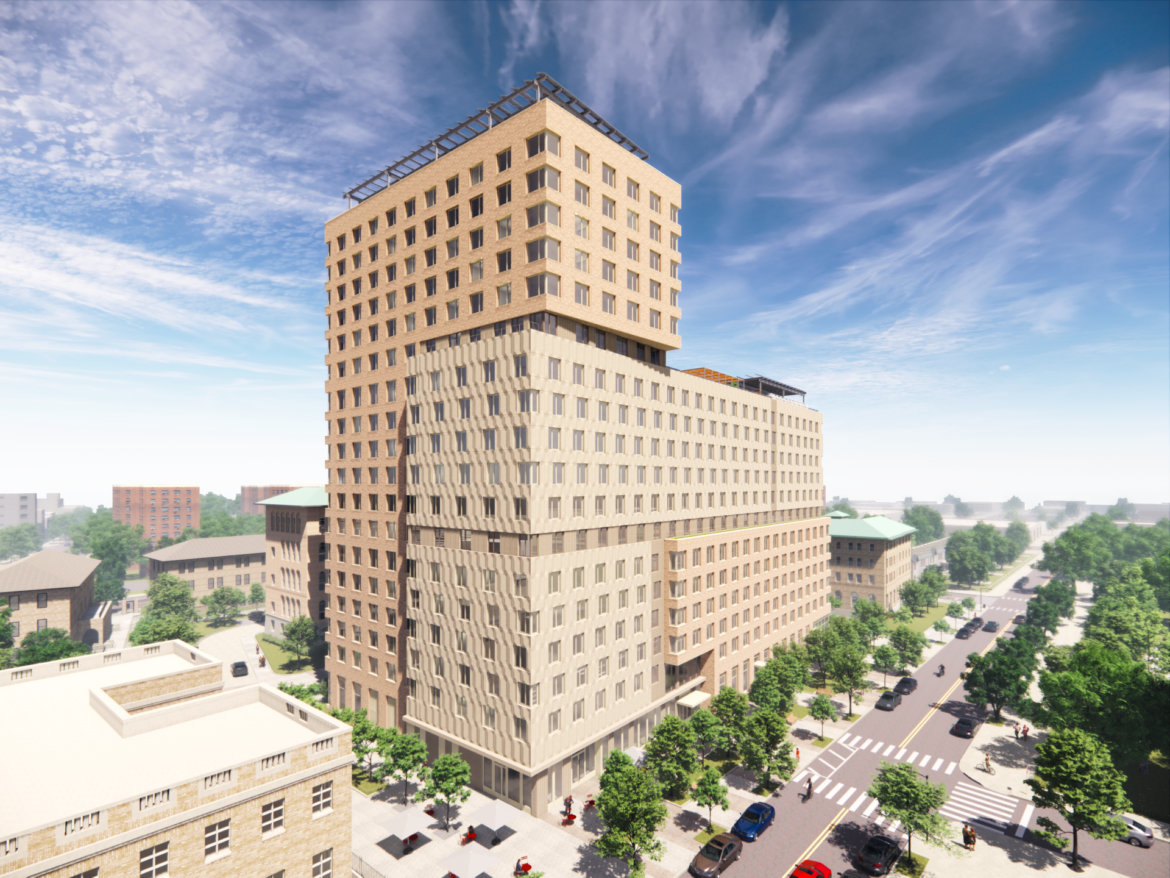 The Hudson Companies and St. Nicks Alliance on Wednesday, in collaboration with the city’s Department of Housing Preservation and Development (HPD), broke ground on the second phase of Kingsland Commons, a transformation of the former Greenpoint Hospital campus into an affordable housing complex. Designed by Magnusson Architecture and Planning (MAP) and Architecture Outfit, this phase includes an 18-story building with 311 permanently affordable units for extremely low- and very low-income residents, including formerly homeless individuals and families.