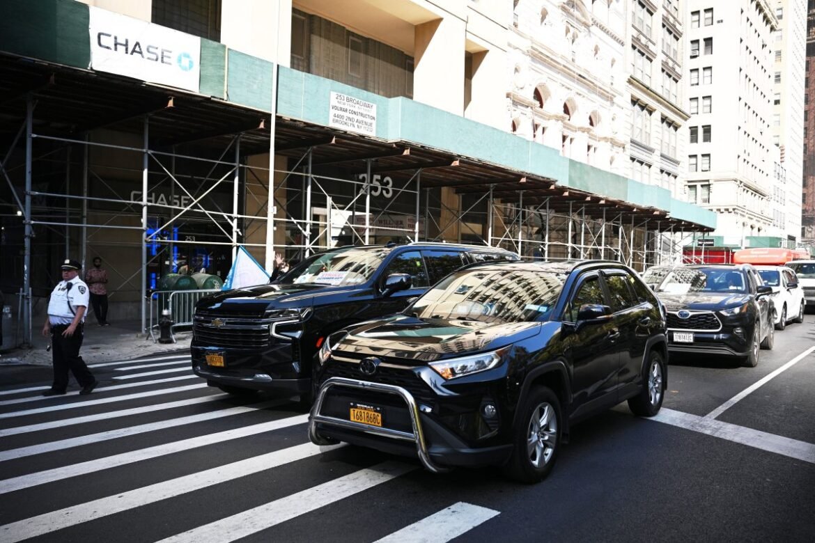 Uber and Lyft drivers in Lower Manhattan.