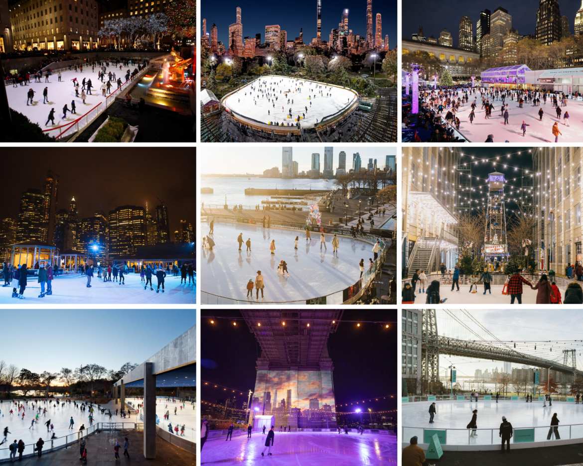When the cool weather of fall fades into the freezing frostiness of winter, it takes a lot of effort to leave our warm, cozy homes. However, one festive activity that gets New Yorkers out of their apartments is ice skating, a New York City tradition since the 1850s. Ahead, find some of the best places in the city to ice skate, from iconic spots like Rockefeller Center and Central Park to new rinks under the Brooklyn Bridge and on the Williamsburg waterfront.