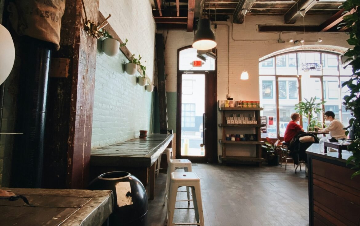 A photo studio during the week, Laobra Cafe is tucked away three floors up in a nondescript building deep in East Williamsburg. Floor-to-ceiling windows backdrop the brutalist, concrete room with floor pillow seating, a long cozy couch, and communal tables. Touted as a place “designed to explore great ideas,” day passes are available for $15 and include unlimited coffees, teas, or lattes and the option to have the featured treat of the weekend. It’s great for a sunset, hot drinks, and good conversation.