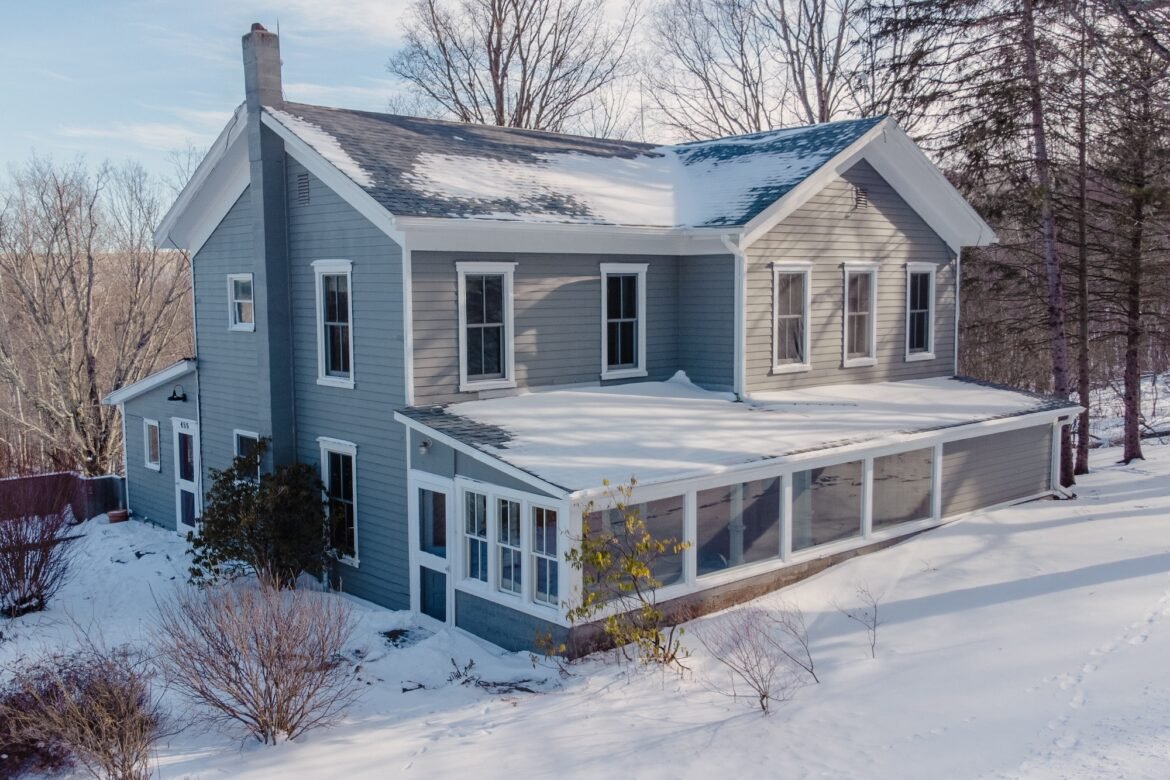 If you’re dreaming of a rustic farmhouse surrounded by acres of rolling hills, you’ll want to consider Bailey Farm at 455 Bailey Road in Stamford, New York. Asking $549,000, this Catskills country estate on 33 upstate acres is sufficiently away-from-it-all, while also being the picture of modern farmhouse comfort and warmth. Anchoring a former cauliflower farm, the historic home boasts sun-filled covered porches at the front and back. Outside, two barns offer room for expansion.