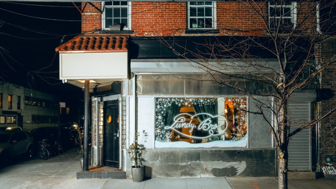 The spirit of Sheepshead Bay is more explicitly invoked on the menu, which is built around Lundy’s classics. The quantity of food, more than the quality, was the original draw—Gael Greene, the late New York restaurant critic, once described Lundy’s as “a fortress of gourmandise and sensory insult”—and, likewise, portions at the new place are generous, if not gargantuan, and the food is decent but unremarkable. Start a meal with a basket of Lundy’s famous biscuits—small and pale, good without quite tipping into excellent—and end it with Lundy’s pie, a bubbling ramekin of huckleberries under a flaky crust, sweet and just a little gummy, with the requisite snowball of ice cream on top, melting into chilly rivulets of cream. In between, there is chilled seafood, available à la carte or as a tiered plateau, with sweet oysters, plump shrimp, a portion of saucy Crab Louis, and a halved lobster tail. For the main course there is a broiled lobster (among his many other accomplishments, Irving Lundy was rumored to be the inventor of the lobster bib!), and a crisp-skinned half chicken served with a sauceboat of bronze, rosemary-scented jus. Among the sides, go for the Lundy’s potatoes, sliced lyonnaise-style and served in a skillet, with caramelized onions and a dollop of sour cream—delicious, but how could it not be? The Shore Dinner is back, though it’s now a more modest three-course menu, with just a soup and salad to begin. Dessert, at least, still comes with coffee. Many of the cocktails, as a server hesitatingly noted one evening, are named for old fishing boats from Sheepshead Bay.