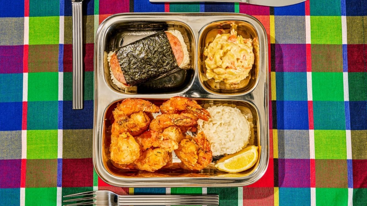 Alongside poke bowls and the sport of surfing, the plate lunch has become one of the hallmarks of the fiftieth state. To understand the dish is to understand Hawaii’s particular genius for cultural synthesis. Its origins lie in the colonial plantations of the late nineteenth century, when agricultural workers—Indigenous Hawaiians, in addition to people brought in from Japan, China, the Philippines, and elsewhere—laboring on the islands’ vast fruit and sugar fields broke at midday for easy, cheap meals of rice packed up with whatever leftovers and accoutrements were handy. As Hawaii’s economy shifted throughout the years, so did lunch: ersatz food carts and wagons sprang up, serving meals similar to what workers would have brought from home: Japanese katsu, Chinese char siu, Filipino adobo; rice, of course, and macaroni salad, mild and mayonnaise-y, the indelible influence of the American mainland. The carts, in time, were supplemented with proper restaurants and, inevitably, chains both small and large. Today, you can find plate lunch served from trucks parked near construction sites and surf spots, from counters in strip malls, and from trendy, photogenic up-and-comers that gild the lily with carefully sourced ingredients and thoughtful little flourishes. The soul of the plate lunch remains unchanged: it is, fundamentally, a working person’s lunch, caloric and rib-sticking, elevated, through the decades, to something approximating an icon.