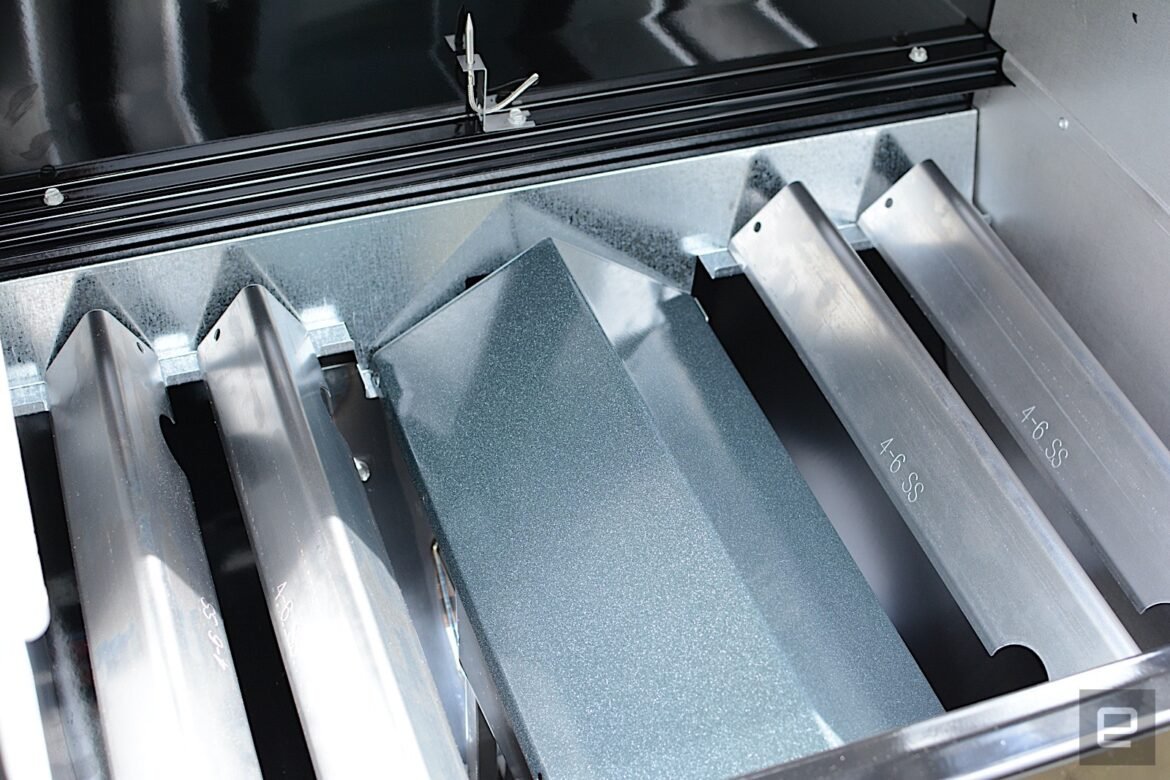 Traeger’s most recent pellet grills were also redesigned to improve cleaning. Most notably, grease and ash end up in the same “keg” that’s easy to detach from the front of the grill. The company also allows you to quickly remove all of the interior components, though they’re larger than what you find on the SmokeFire. Lastly, Traeger moved the pellet chute to the front of the Timberline and Ironwood, making it a lot more convenient to swap out wood varieties or empty an old supply.