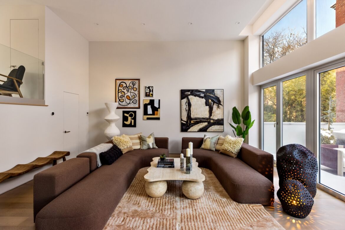 A windowed lower level is the perfect space for a home gym or a wine cellar. This private North Brooklyn corner compound is scheduled to be completed in early 2025.