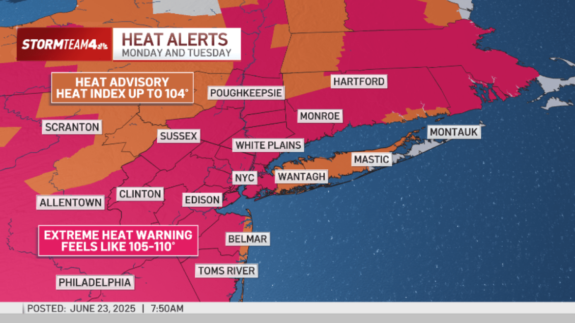 Our high temperatures through Wednesday will stay above 90, peaking at 100 degrees on Tuesday. These highs will break records in many places across the tri-state as multiple spots on the map climb into the triple digits. And that is before considering the heat index, or “feels like” temperature. Check latest weather alerts here.