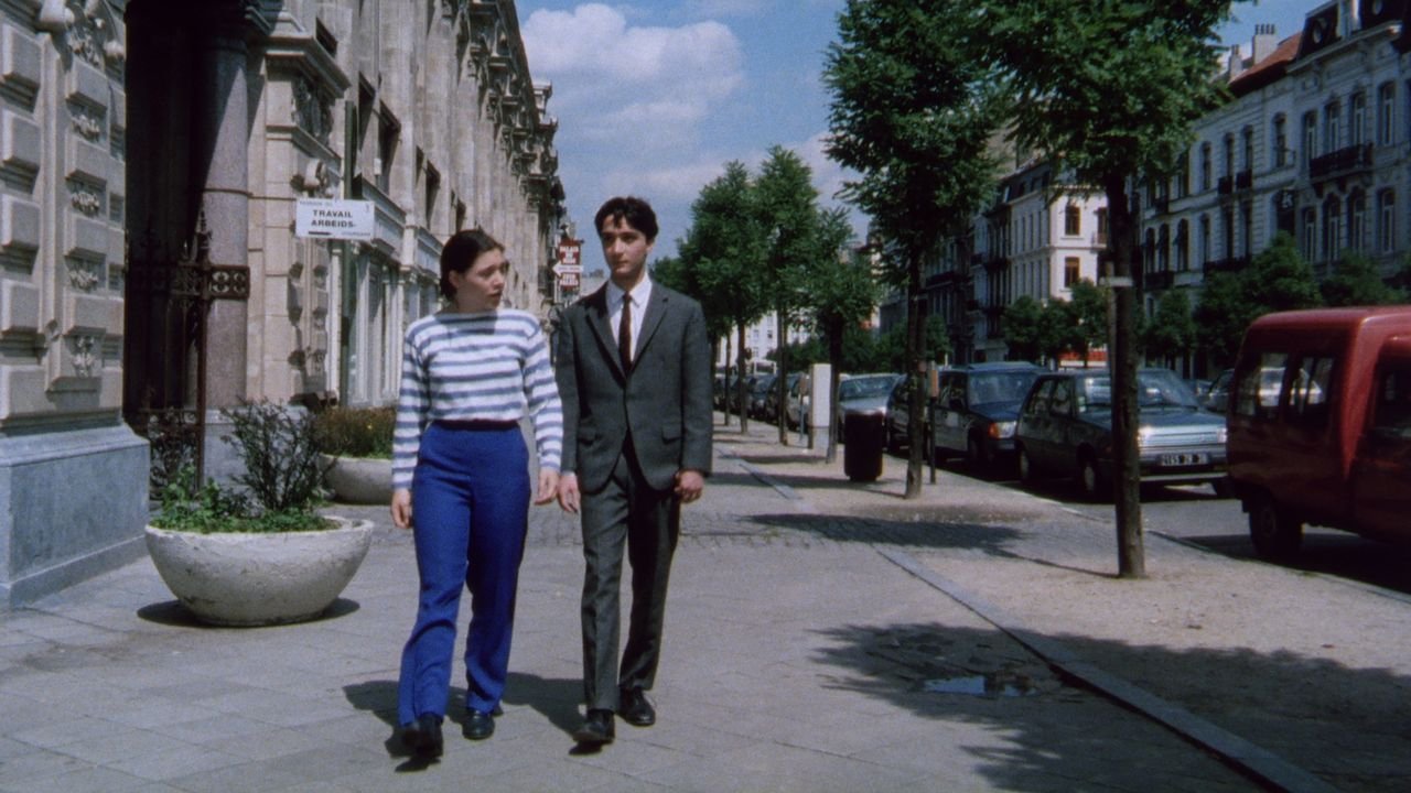 The heart of the story involves a romantic epiphany that’s also an unspoken recognition of homosexual desire; Michèle’s matchmaking scheme is a vicarious replacement for something that’s doomed to go unfulfilled. The subtlety of Akerman’s concept and the wry tenderness of her approach are, however, merely a start. The extraordinary achievement of the drama is that it immediately and consistently fulfills the audacious triple dare of its title, being simultaneously about a character, a time, and a place. Michèle comes across as a singular and powerful personality, with something of Akerman’s own trenchant intellect, assertive candor, and vulnerable self-revelation. At the same time, the movie is a thrillingly airy and active vision of Brussels that maps Michèle’s precocious and ambitious temperament onto the cityscape. Moreover, the film is also a vision of a time pregnant with radical change, with Michèle’s dramatic leap off course foreshadowing the imminent crisis of the Francosphere. (This last is a theme of Akerman’s life, too. Born in 1950, she dropped out of high school and, in 1968, made her first film.)
