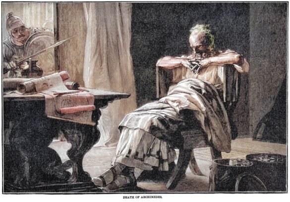 An engraving of the death of Archimedes.