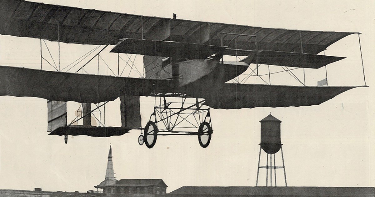 Frenchman Henri Farman was already a celebrated cycling champion, race car driver and entrepreneur when he ordered a biplane from the world’s first airplane factory, Les Frères Voisin. Five months later, in January 1908, he won Ernest Archdeacon’s prize for the first officially observed heavier-than-air flight over a one-kilometer circular course.